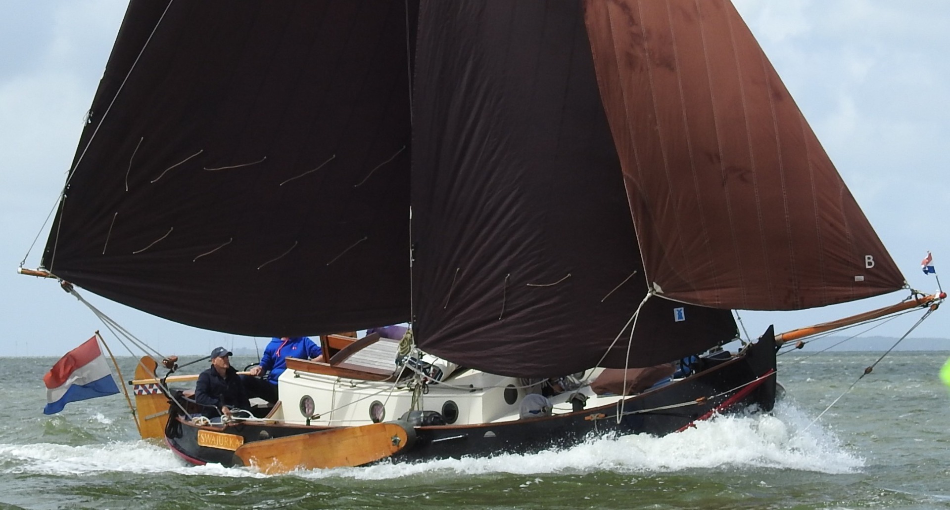 Zeilen: grootzeil(2012, botterfok(2012), stagfok, kluiver, stormkluiver